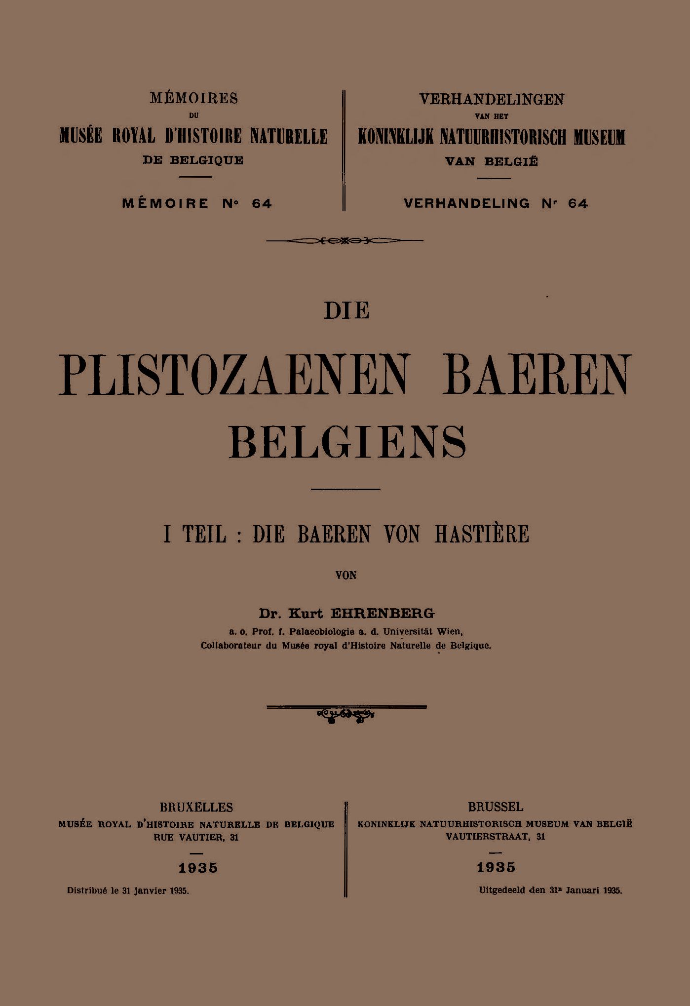 Memoirs of the Royal Belgian Museum of Natural Sciences