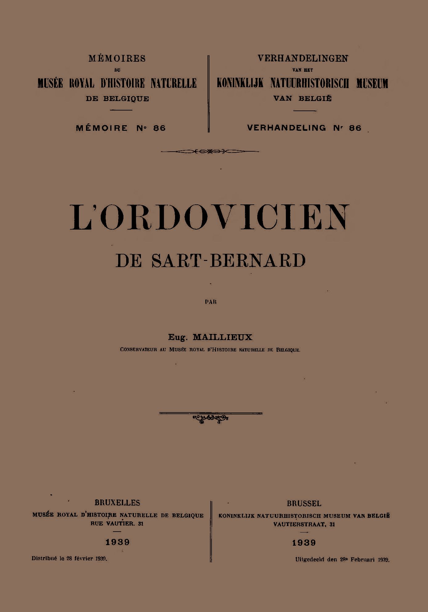 Memoirs of the Royal Belgian Museum of Natural Sciences