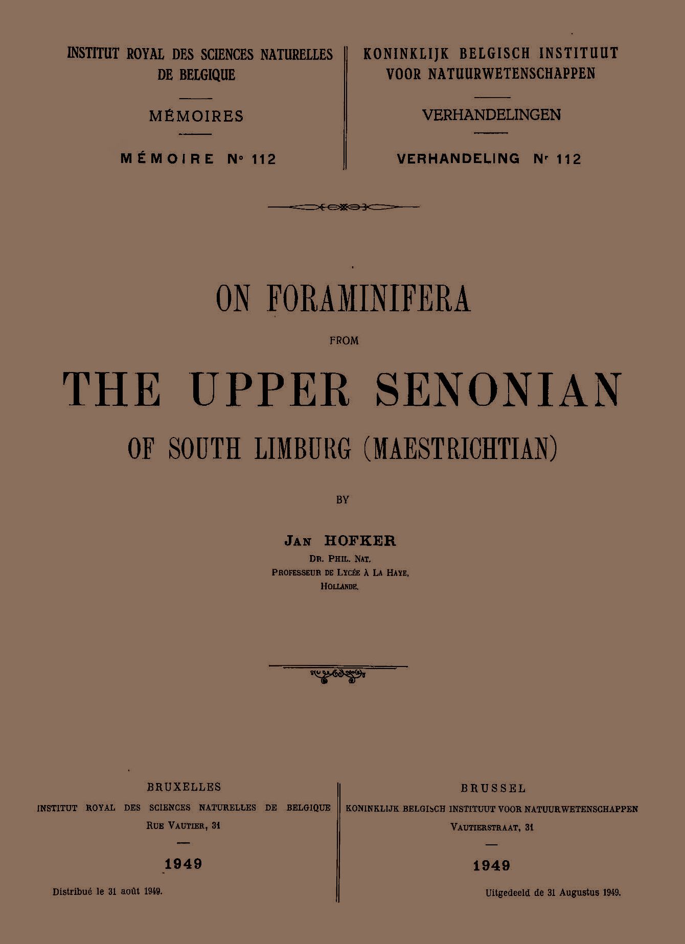 Memoirs of the Royal Belgian Institute of Natural Sciences : first series.