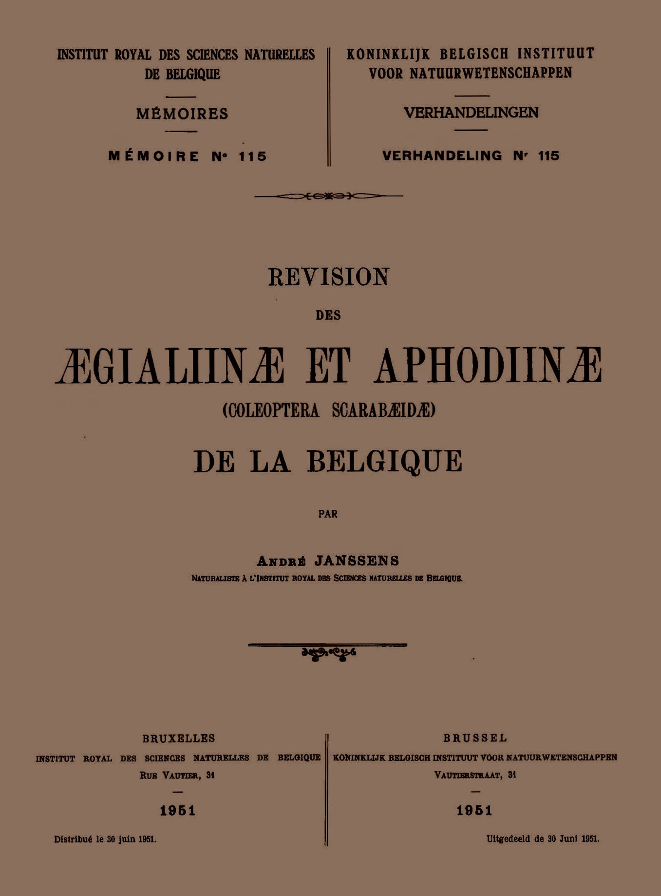 Memoirs of the Royal Belgian Institute of Natural Sciences : first series.