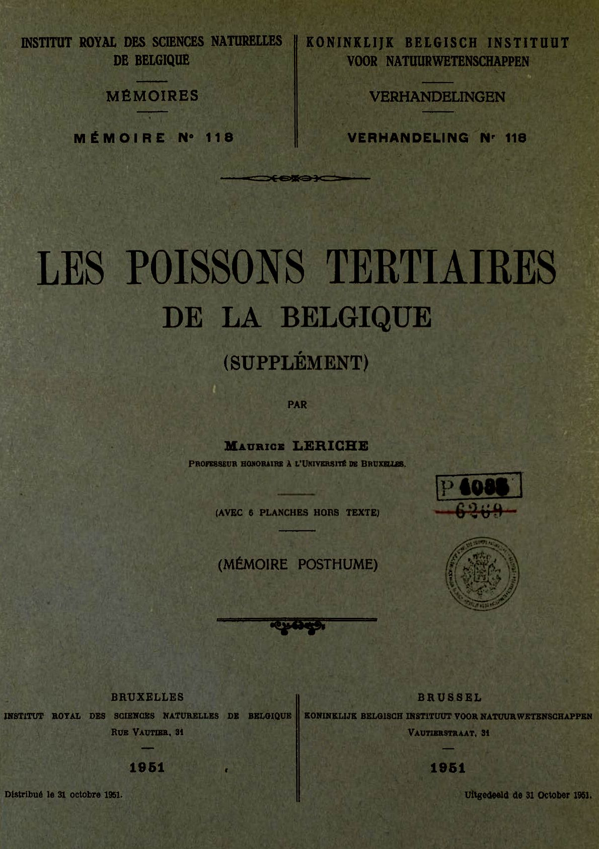 Memoirs of the Royal Belgian Institute of Natural Sciences : first series.