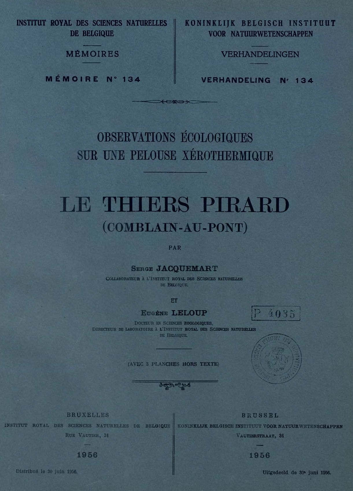 Memoirs of the Royal Belgian Institute of Natural Sciences : first series.