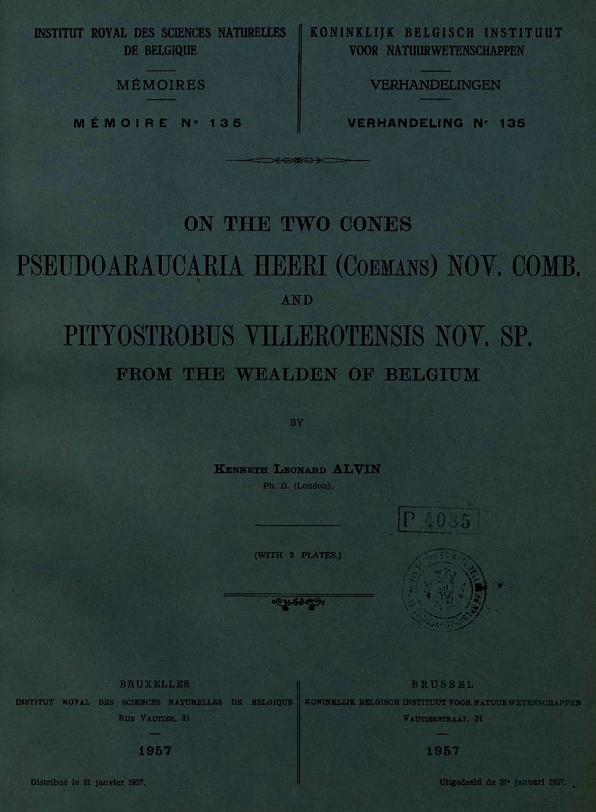 Memoirs of the Royal Belgian Institute of Natural Sciences : first series.