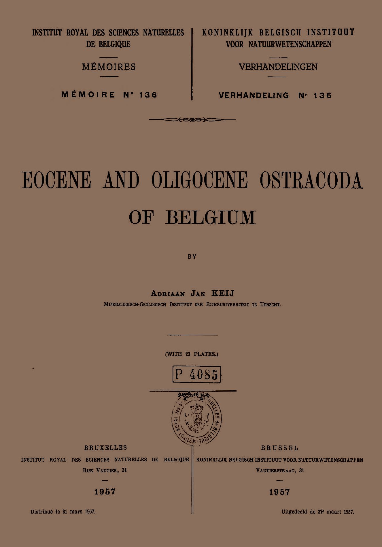Memoirs of the Royal Belgian Institute of Natural Sciences : first series.
