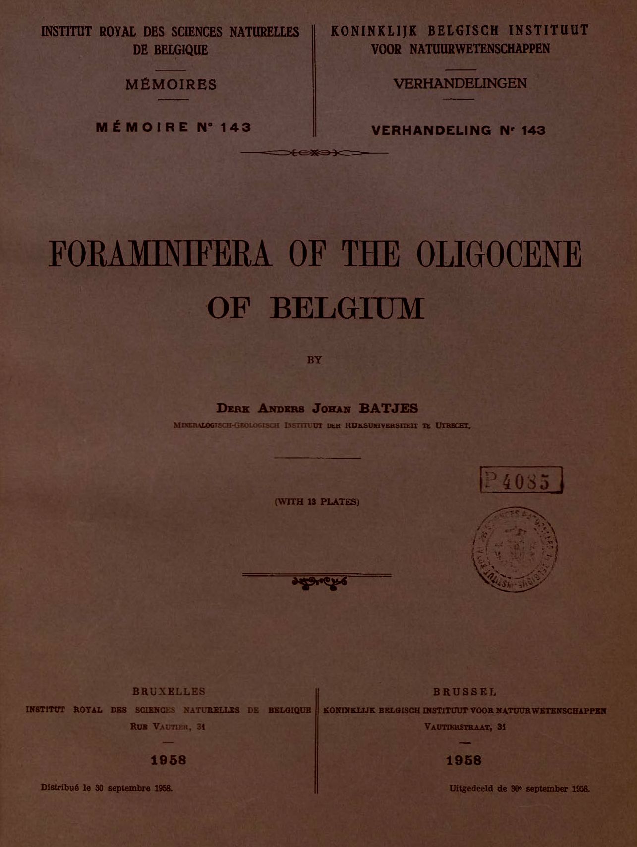 Memoirs of the Royal Belgian Institute of Natural Sciences : first series.