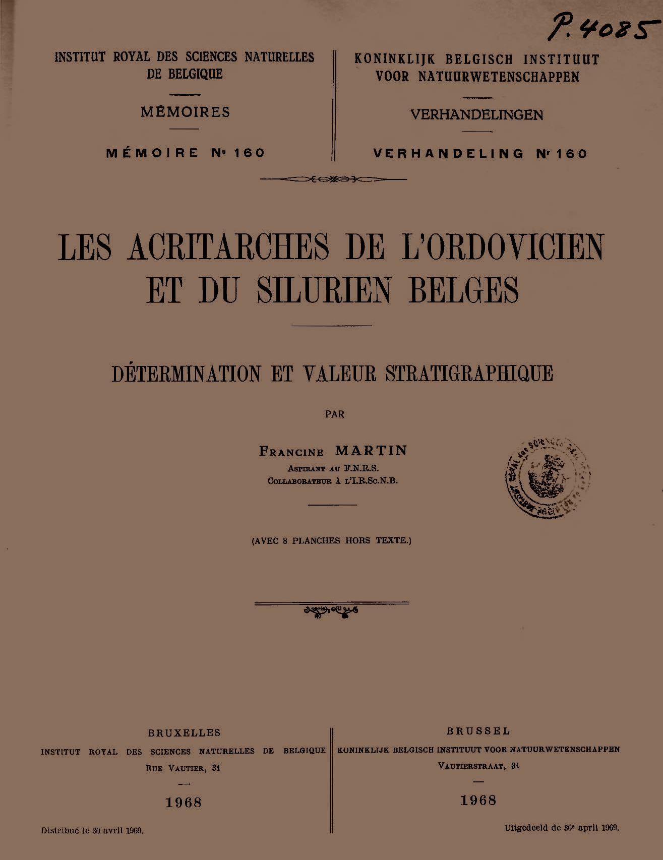 Memoirs of the Royal Belgian Institute of Natural Sciences : first series.
