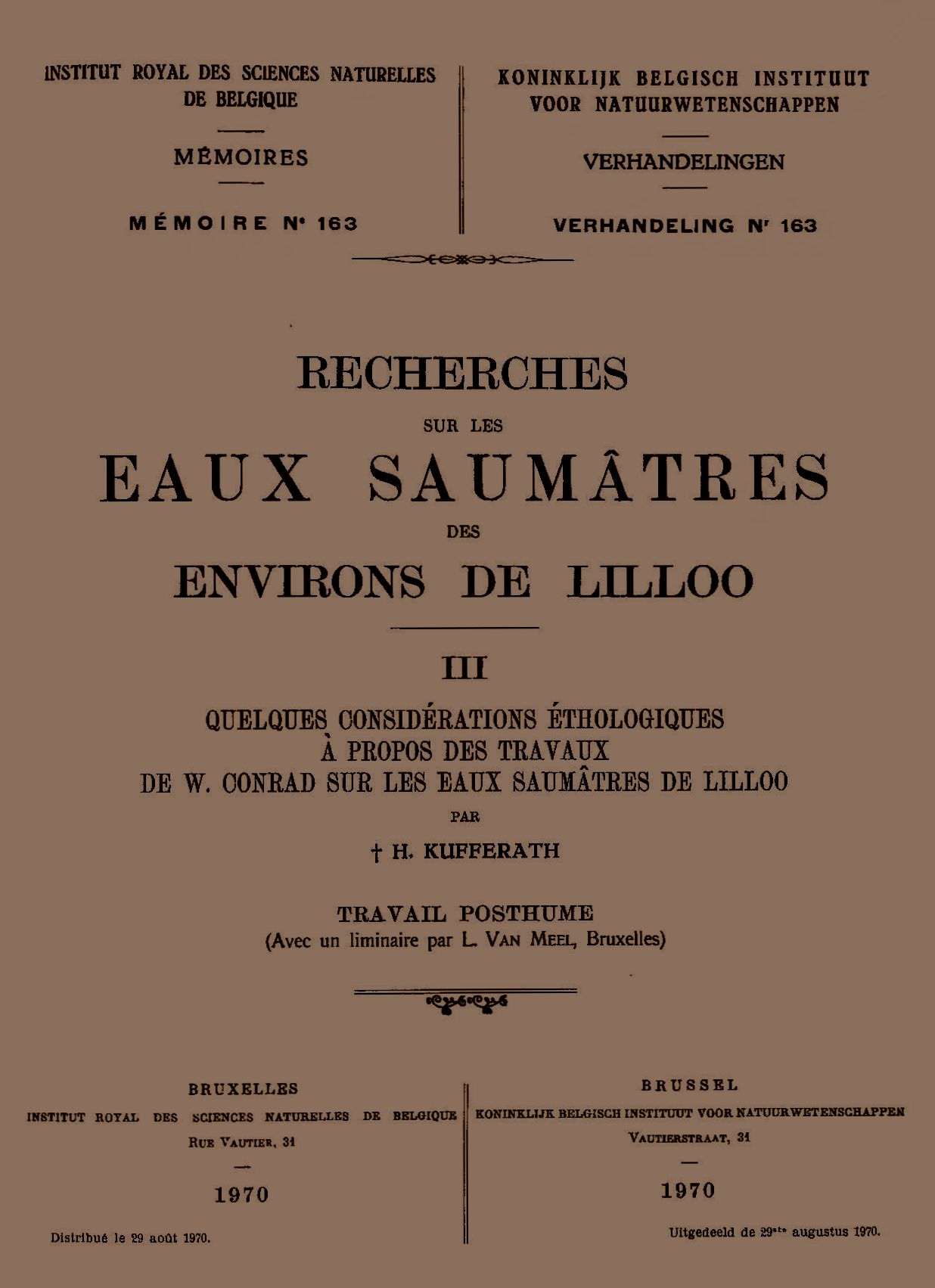 Memoirs of the Royal Belgian Institute of Natural Sciences : first series.
