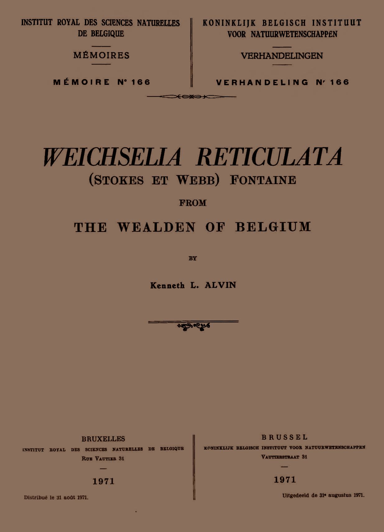 Memoirs of the Royal Belgian Institute of Natural Sciences : first series.