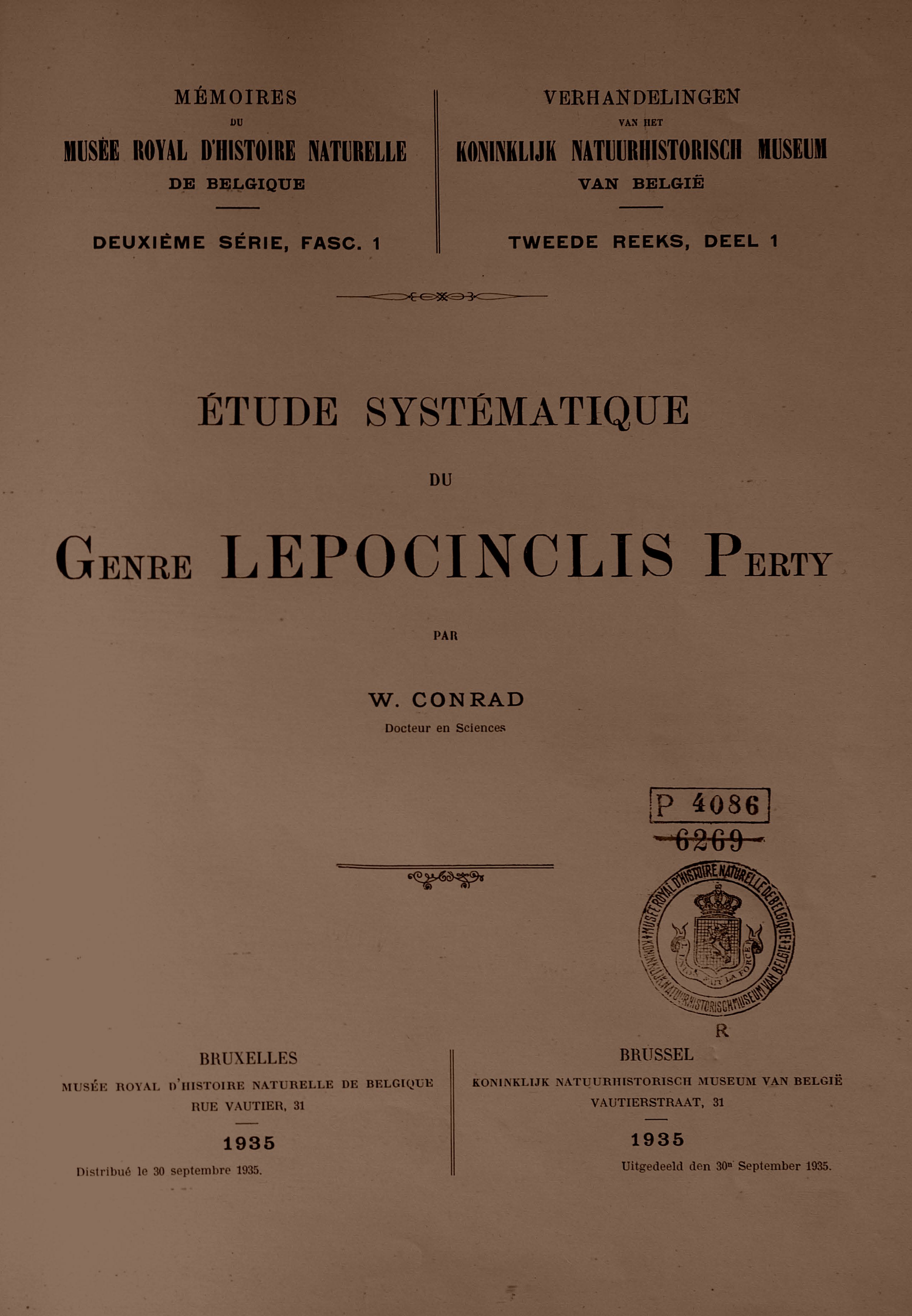 01 - 1935 - Etude systématique du Genre LEPOCINCLIS Perty
