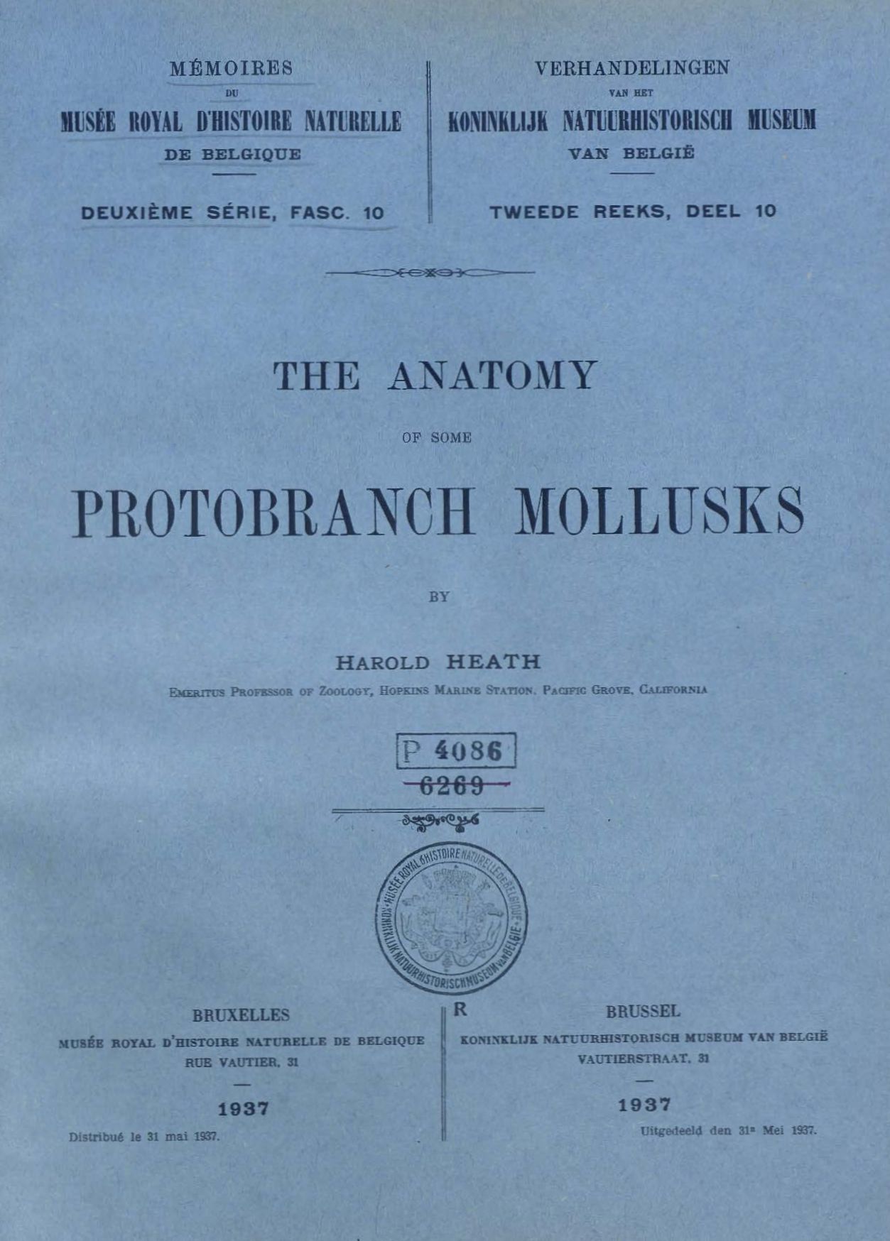 Memoirs of the Royal Institute of Natural Sciences of Belgium : second series.