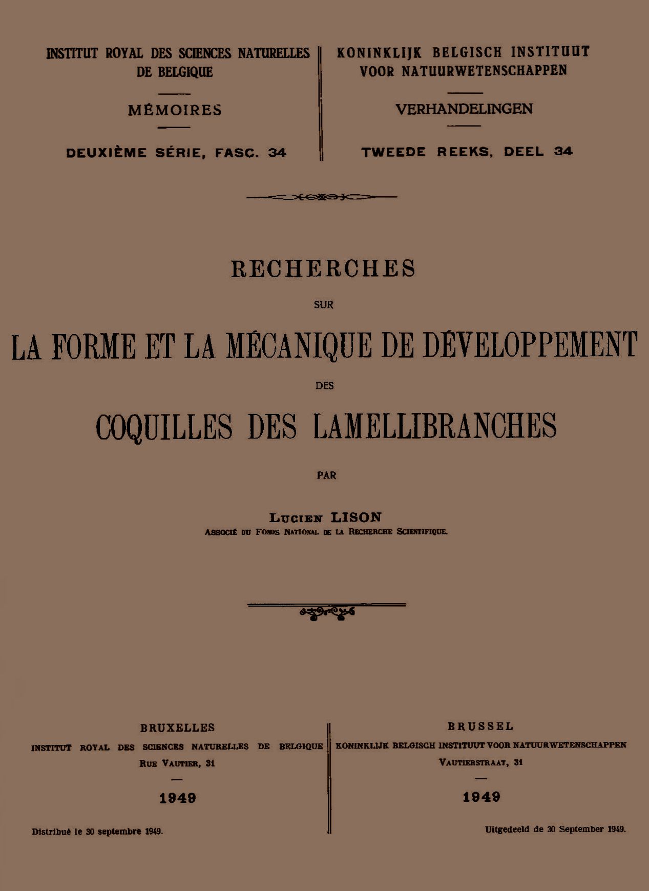 Memoirs of the Royal Institute of Natural Sciences of Belgium : second series.