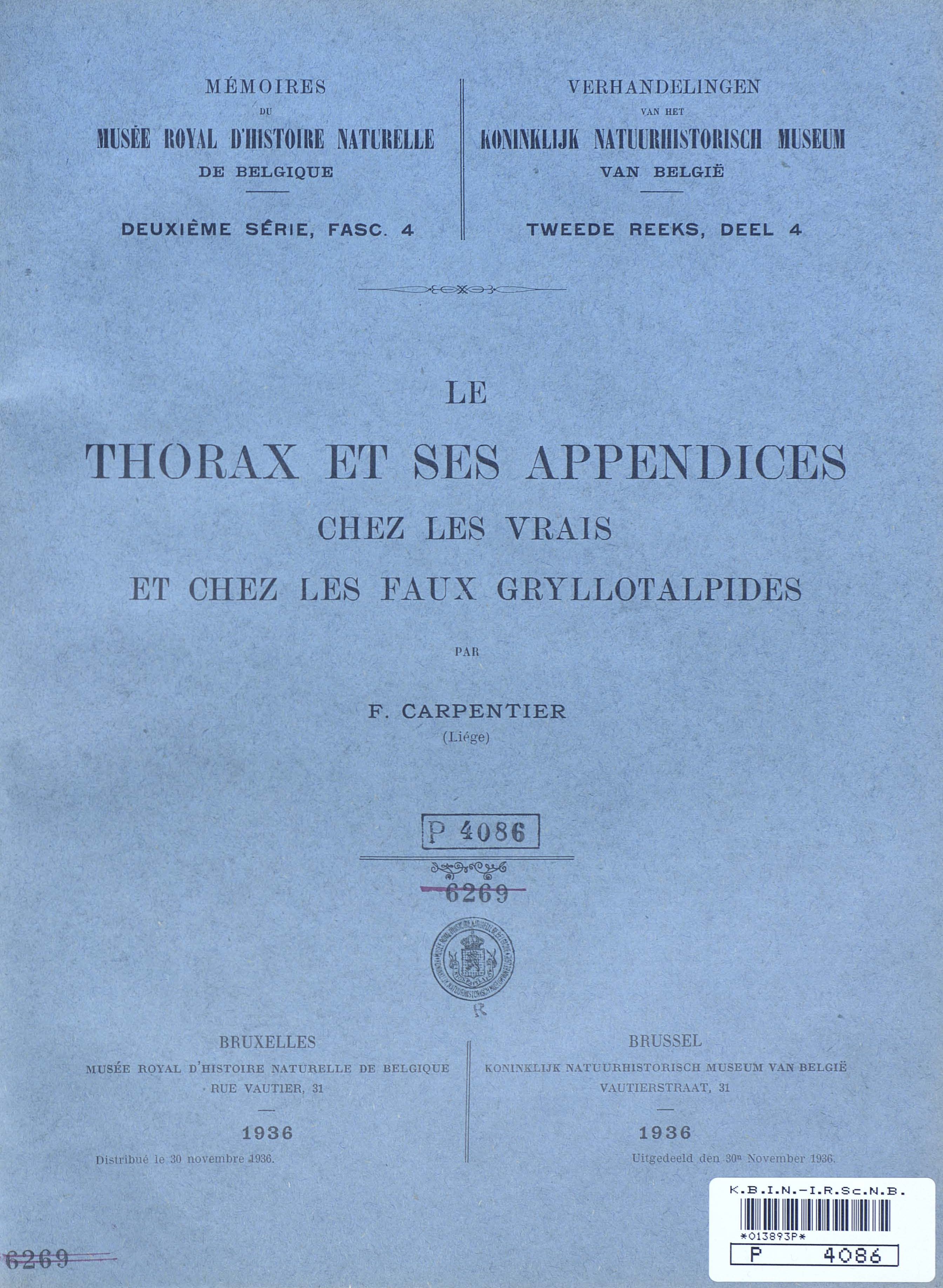 04 - 1936 - Le thorax et ses appendices chez les vrais et chez les faux Gryllotalpides
