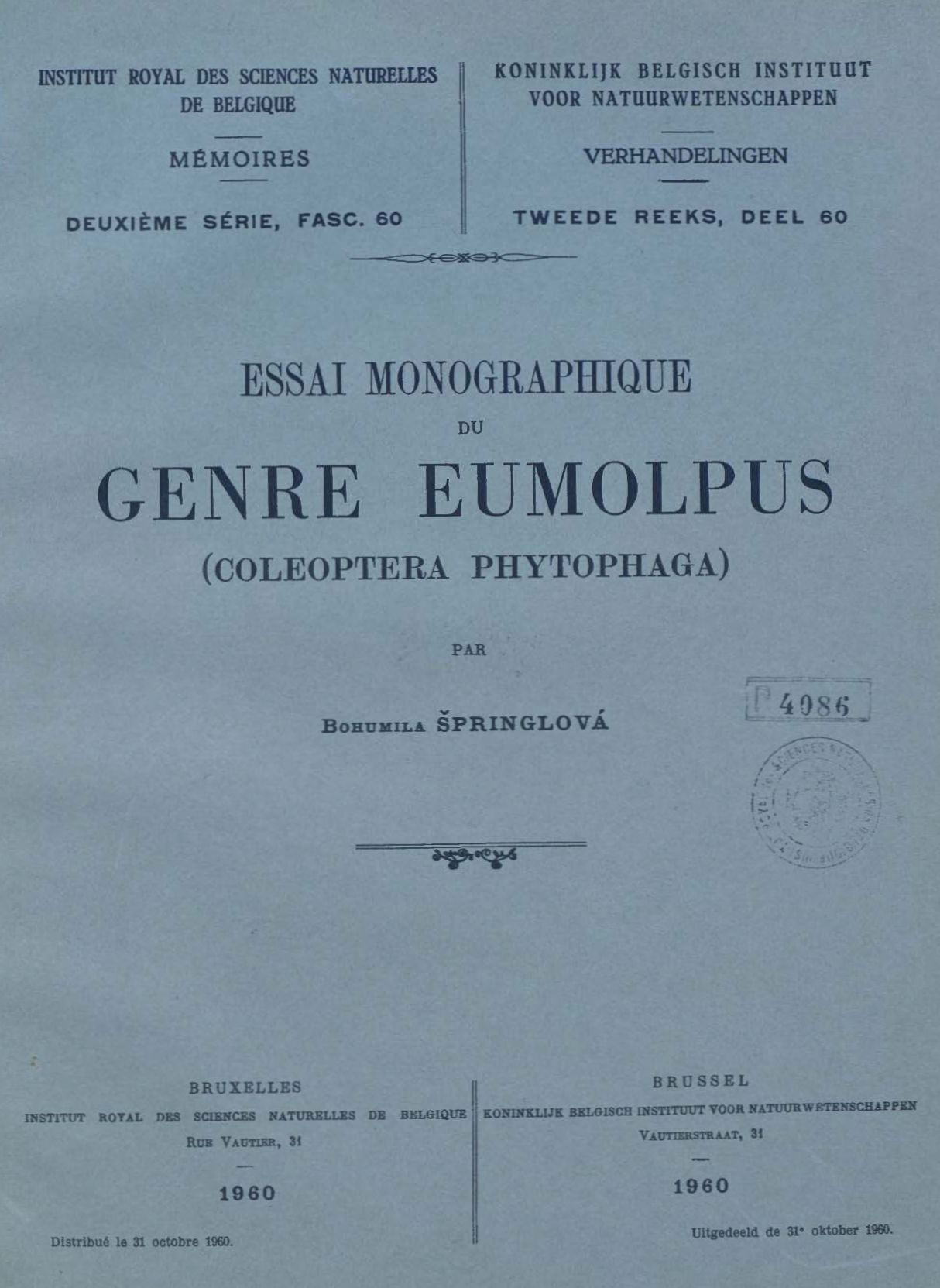 Memoirs of the Royal Institute of Natural Sciences of Belgium : second series.