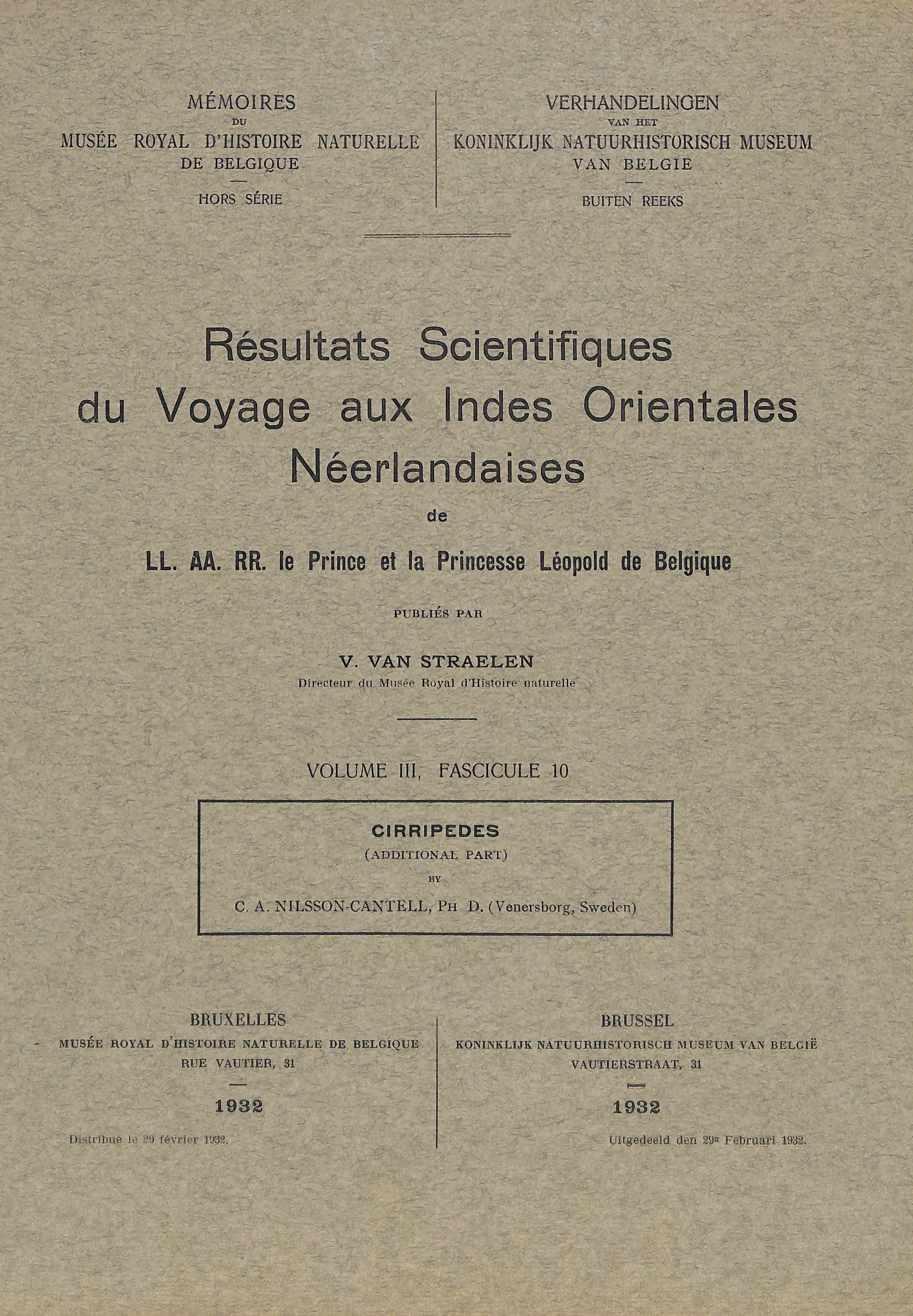 Occasional - Scientific results of the trip to the Dutch East India of LL. AA. RR. The Prince and Princess Leopold of Belgium , published by Victor van Straelen.