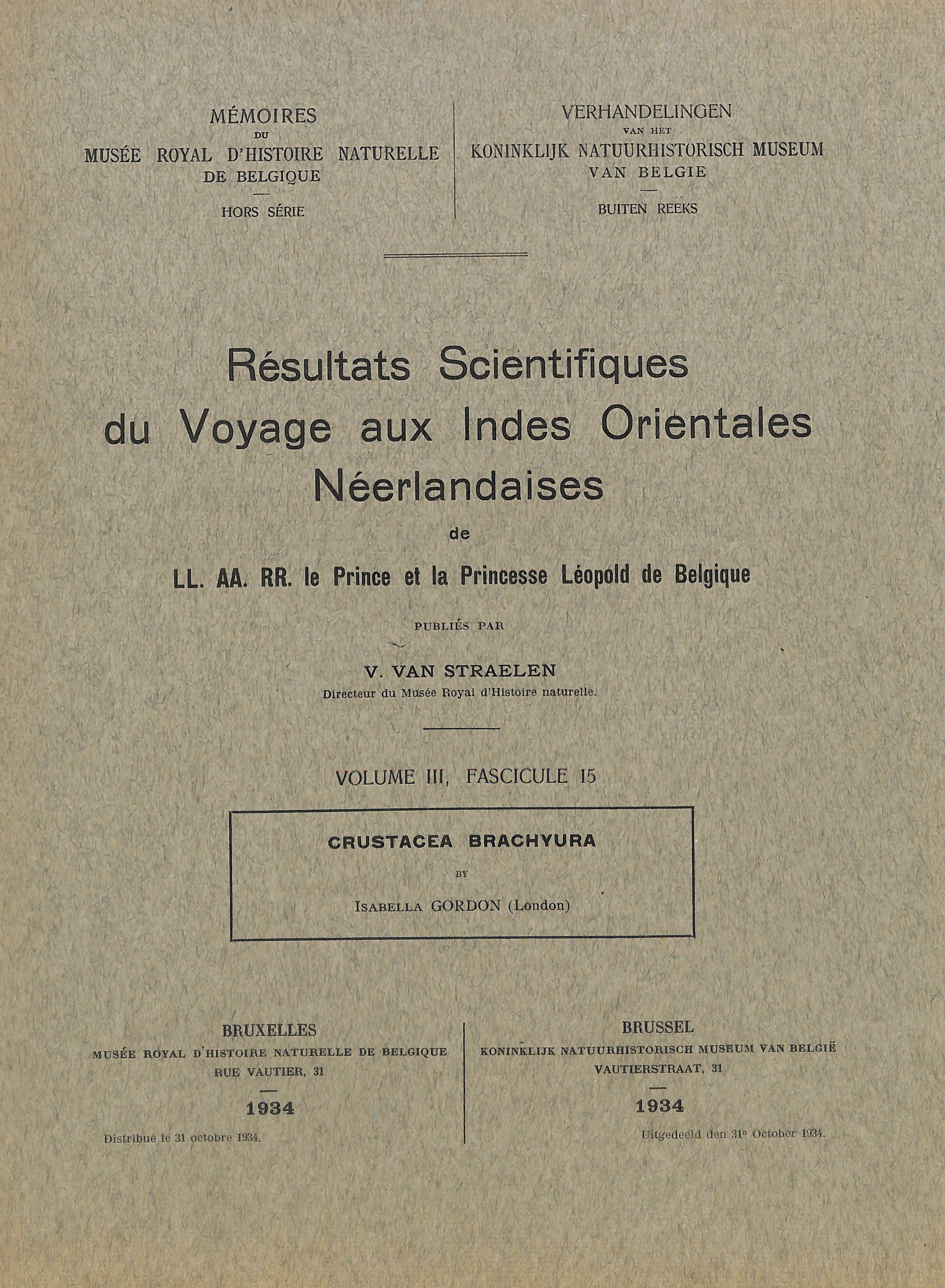Occasional - Scientific results of the trip to the Dutch East India of LL. AA. RR. The Prince and Princess Leopold of Belgium , published by Victor van Straelen.