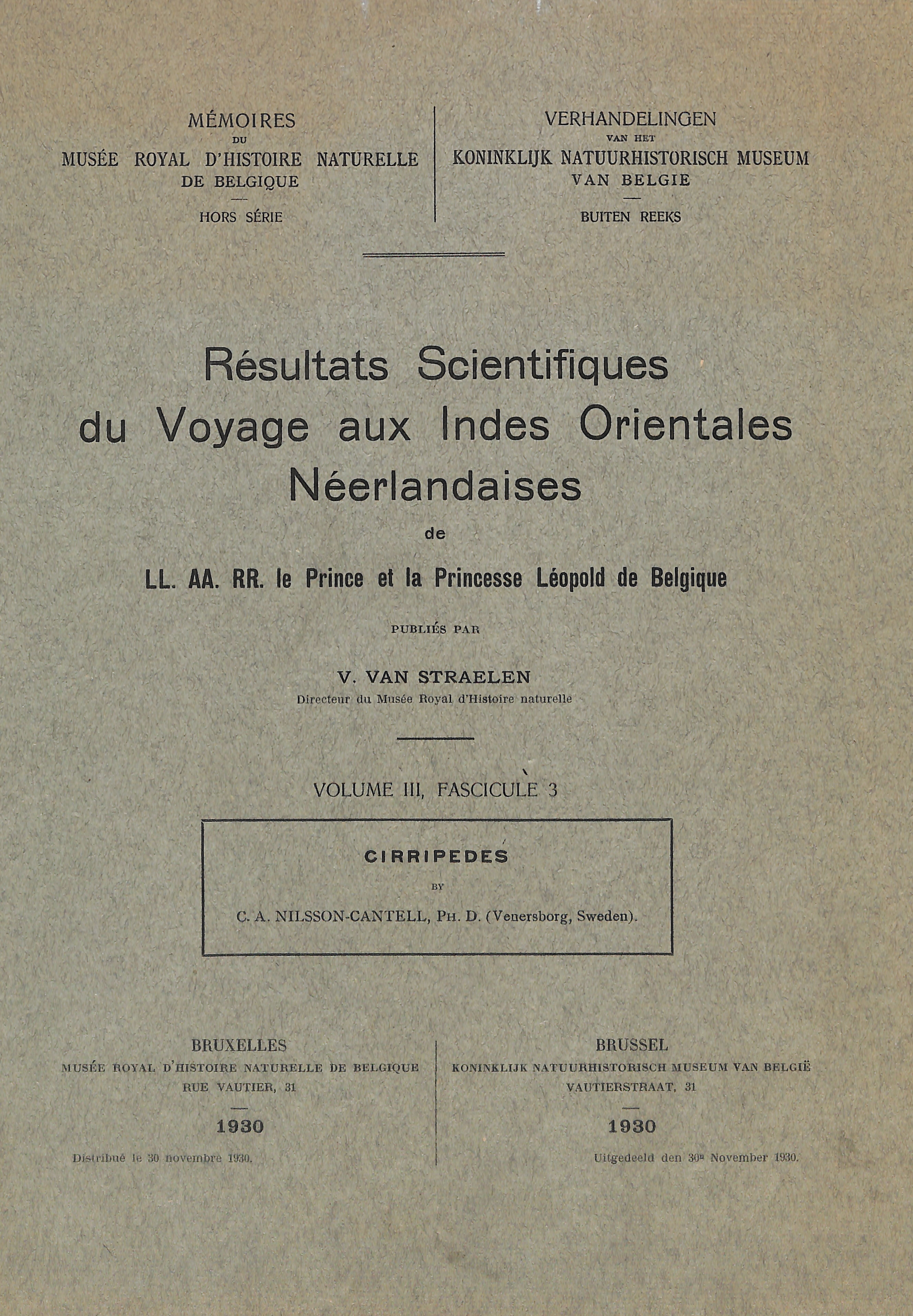 Occasional - Scientific results of the trip to the Dutch East India of LL. AA. RR. The Prince and Princess Leopold of Belgium , published by Victor van Straelen.