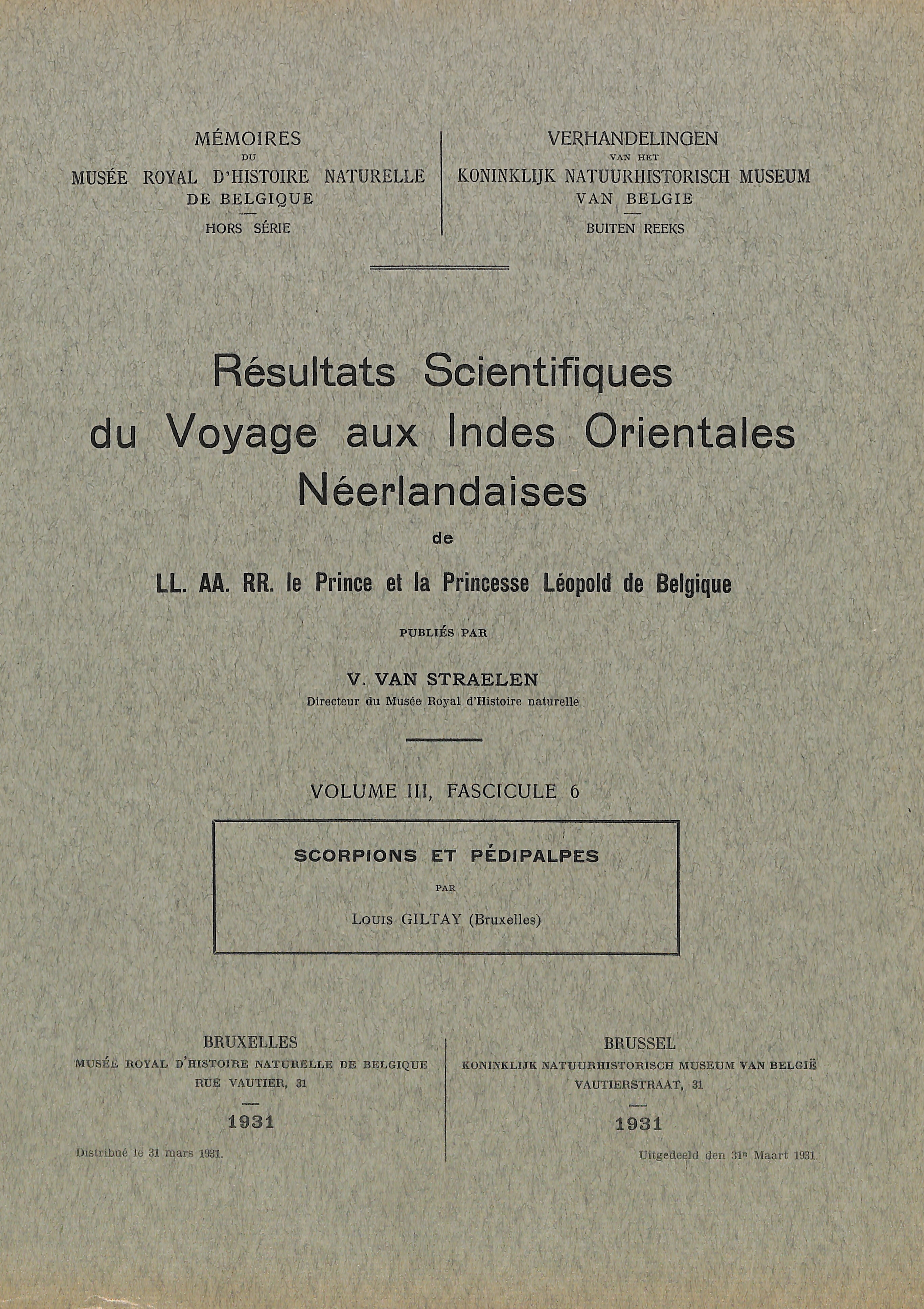 Occasional - Scientific results of the trip to the Dutch East India of LL. AA. RR. The Prince and Princess Leopold of Belgium , published by Victor van Straelen.