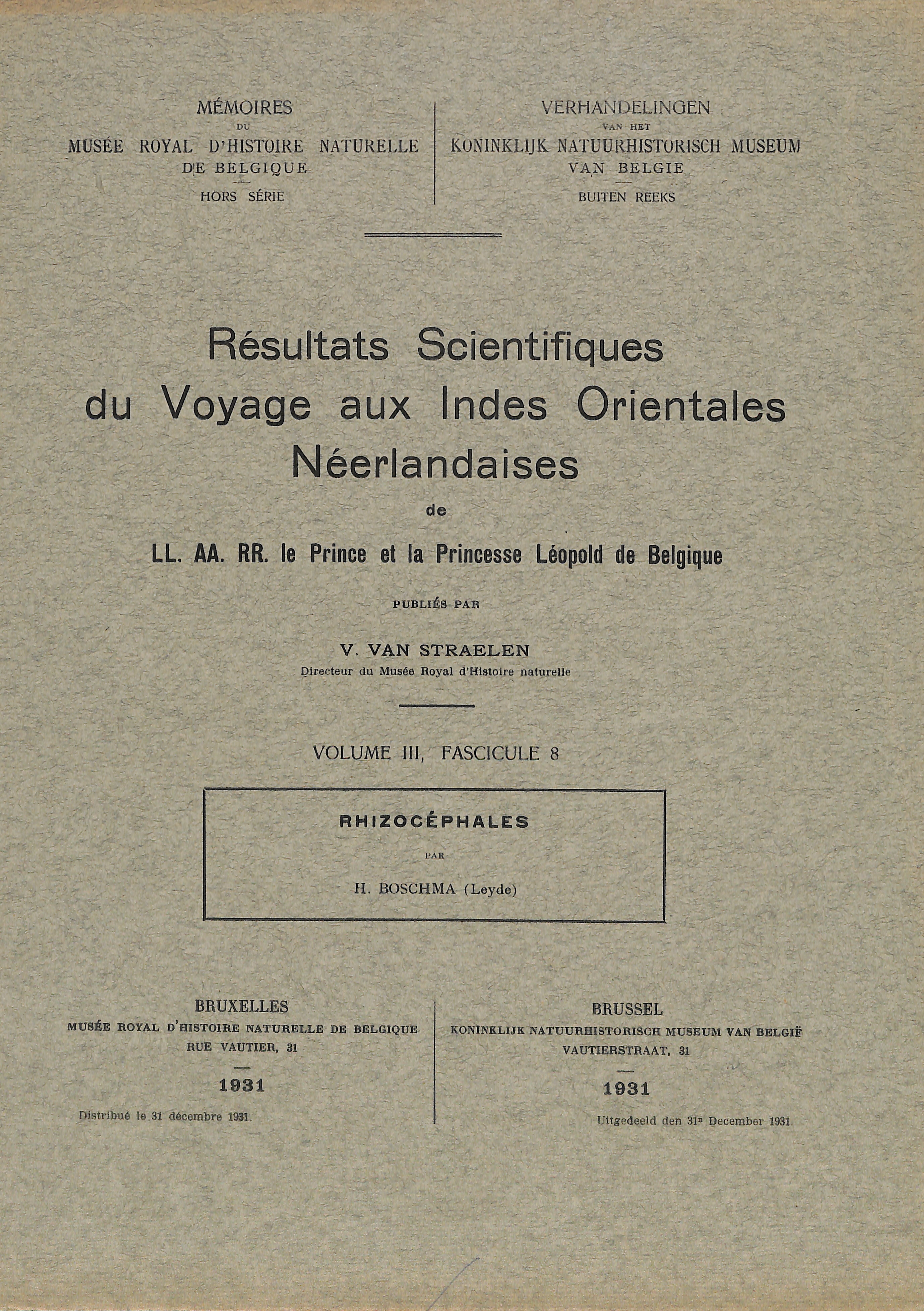 Occasional - Scientific results of the trip to the Dutch East India of LL. AA. RR. The Prince and Princess Leopold of Belgium , published by Victor van Straelen.