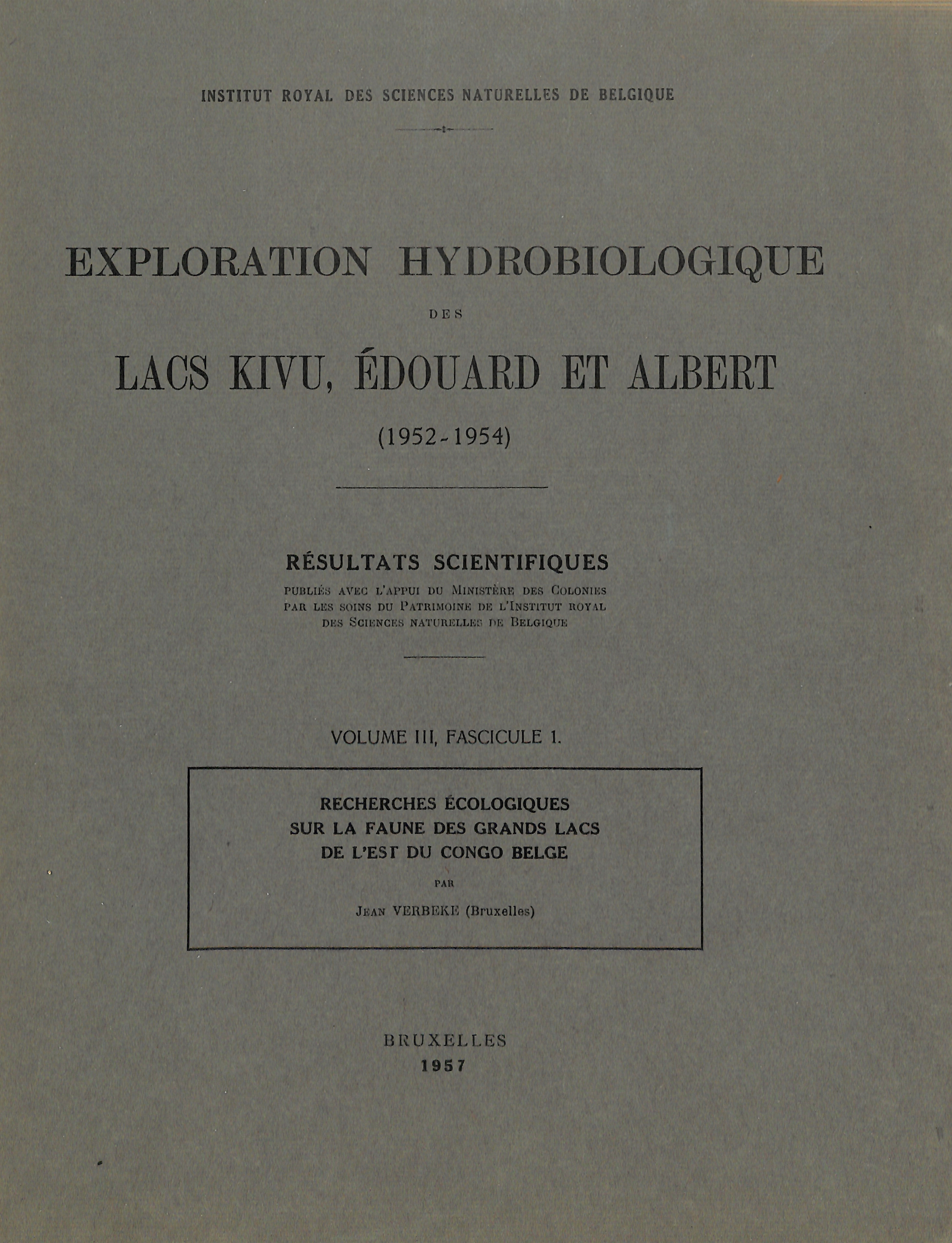 Vol 3(1)-1957 - Recherches écologiques sur la faune des grands lacs de l'Est du Congo belge