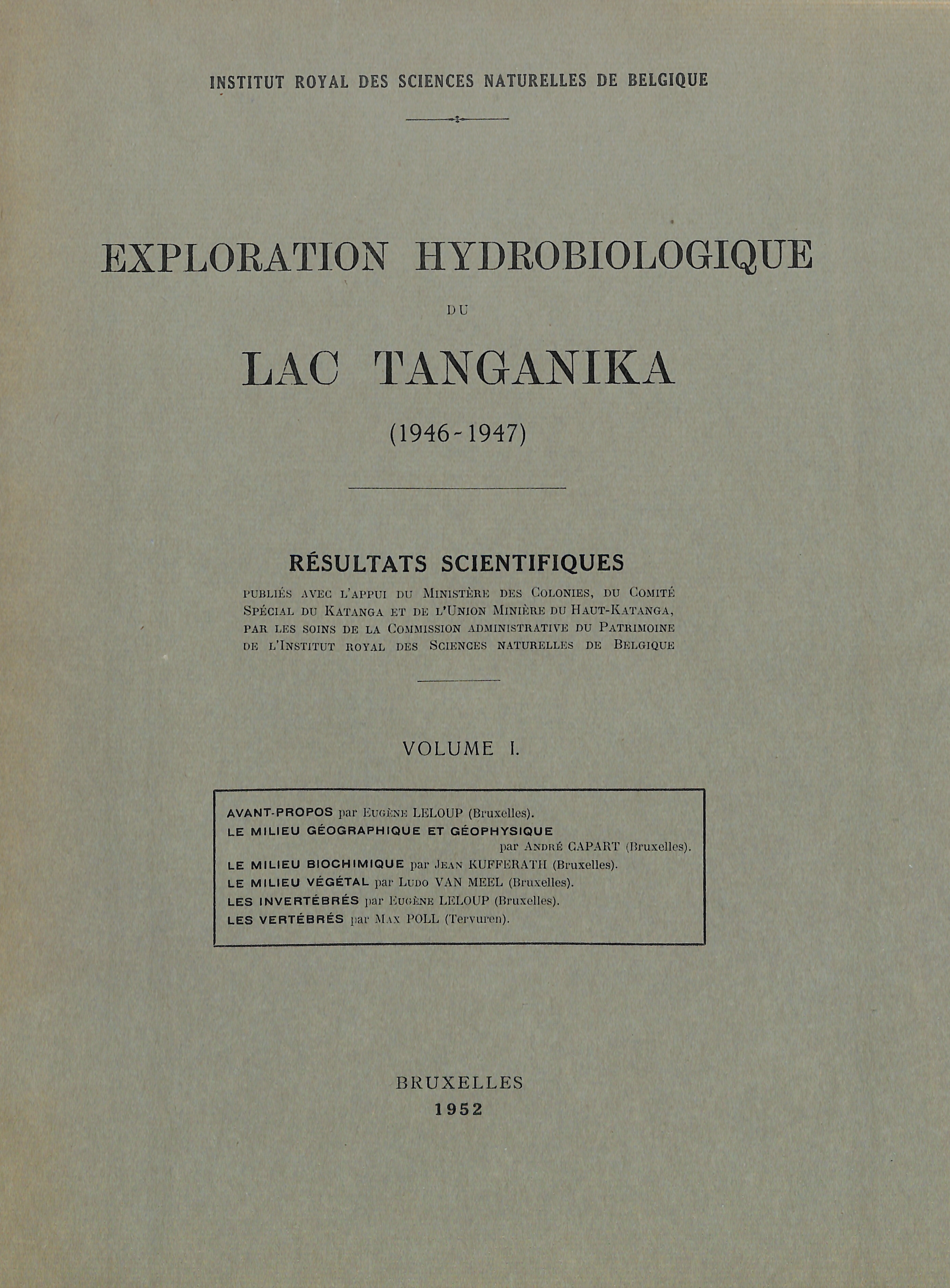 Scientific results from the hydrobiological exploration lake Tanganyika (1946-1947)