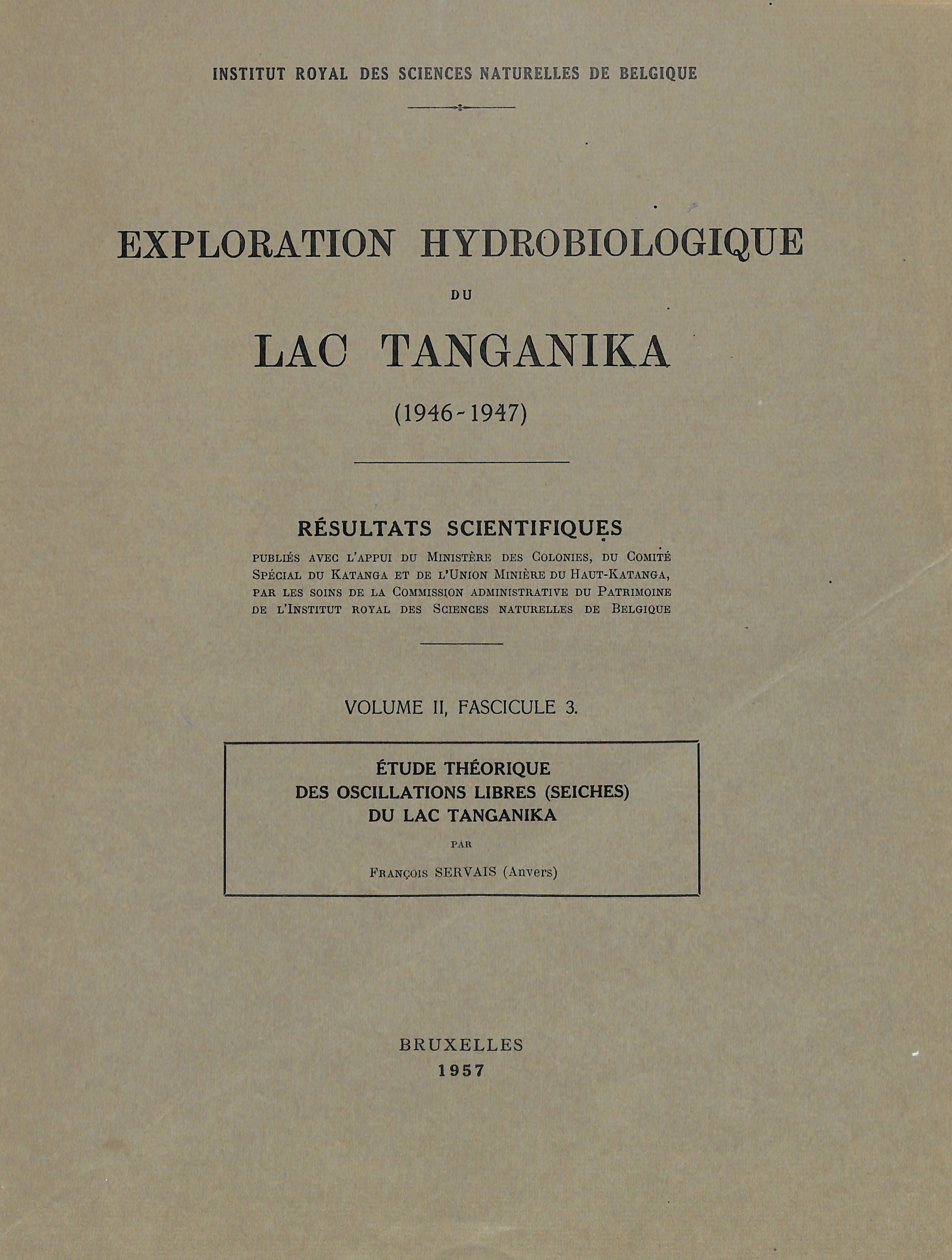 Vol 2(3)-1957 - Etude théorique des oscillations libres (Seiches) du lac Tanganika