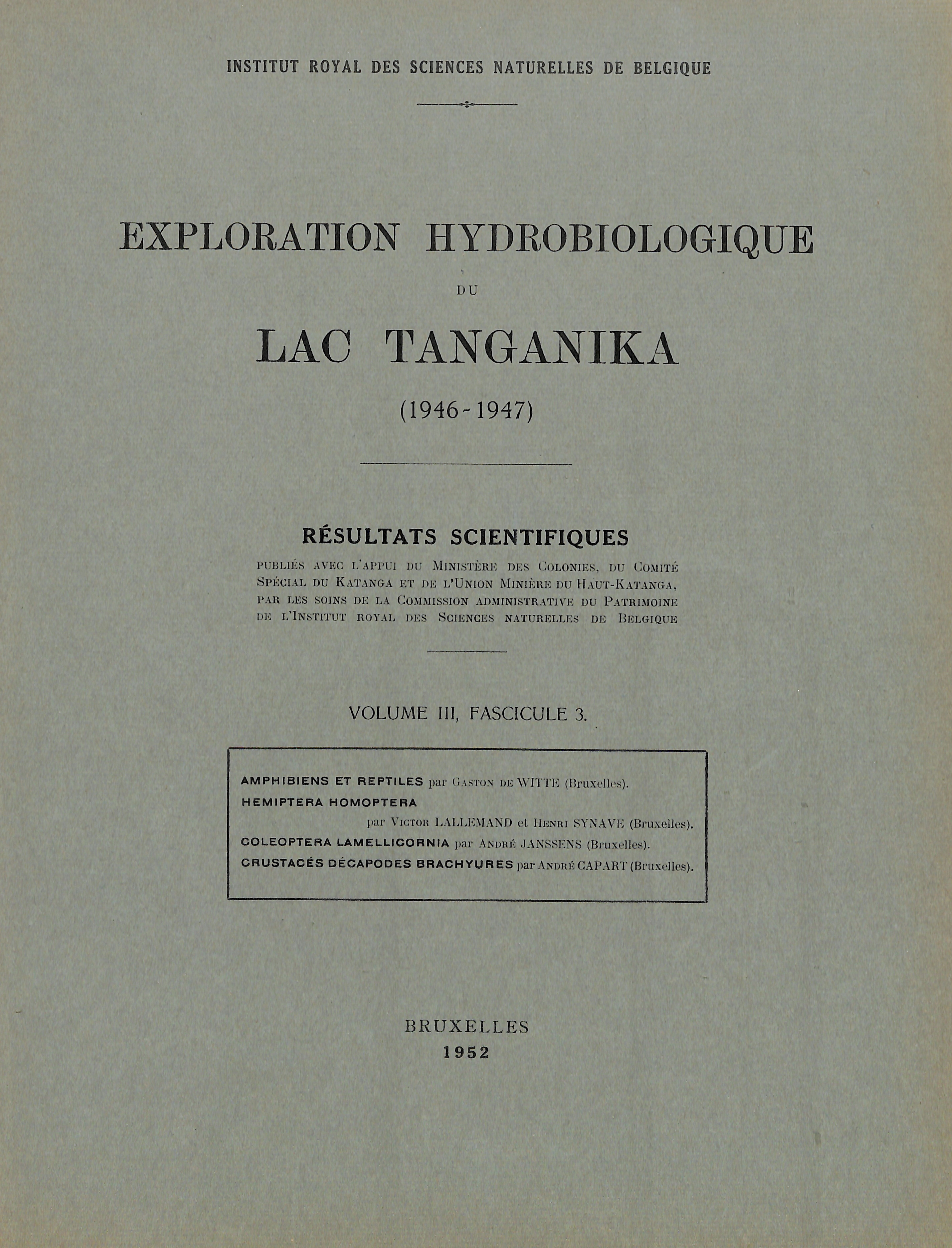 Scientific results from the hydrobiological exploration lake Tanganyika (1946-1947)