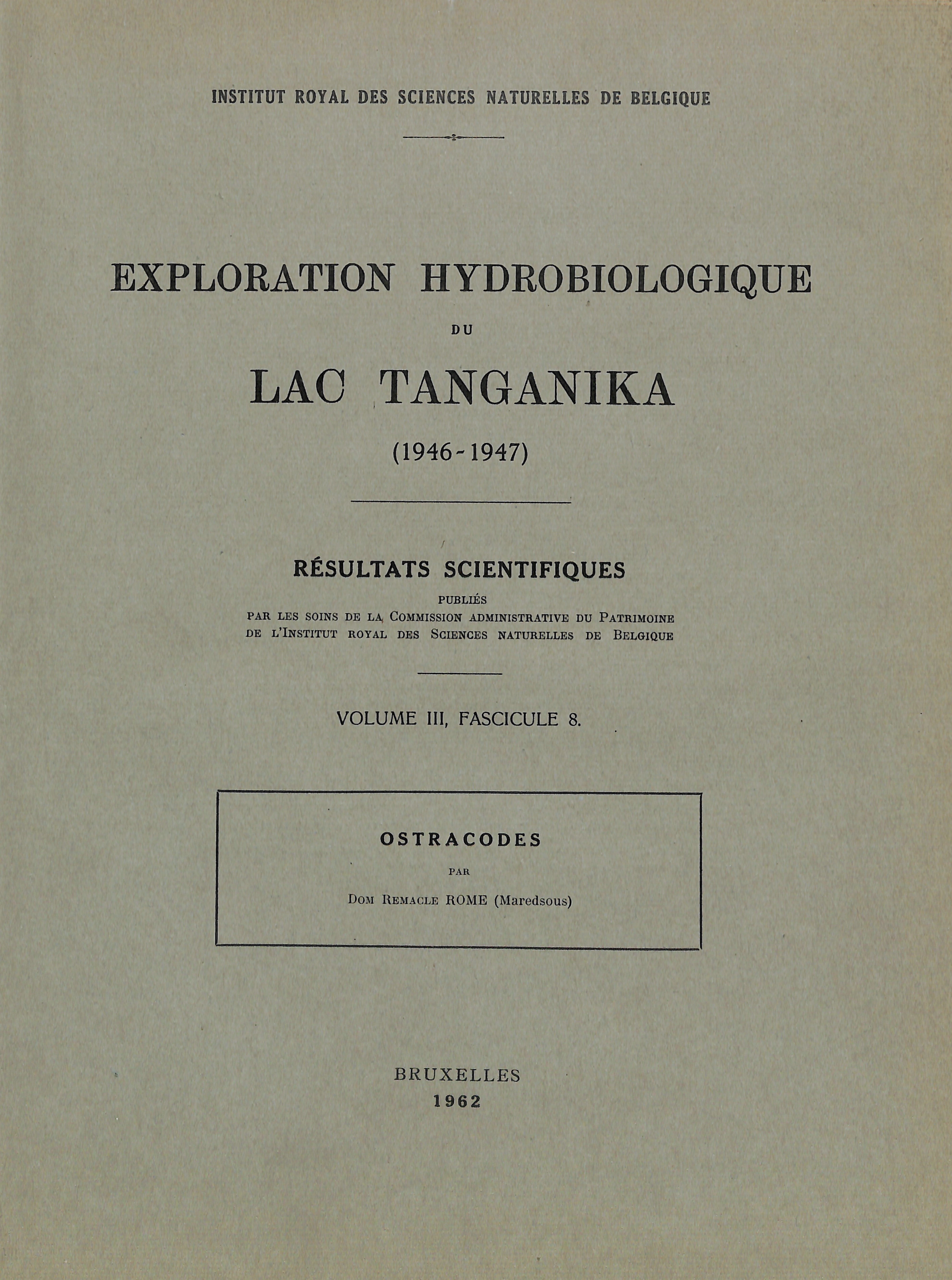 Scientific results from the hydrobiological exploration lake Tanganyika (1946-1947)