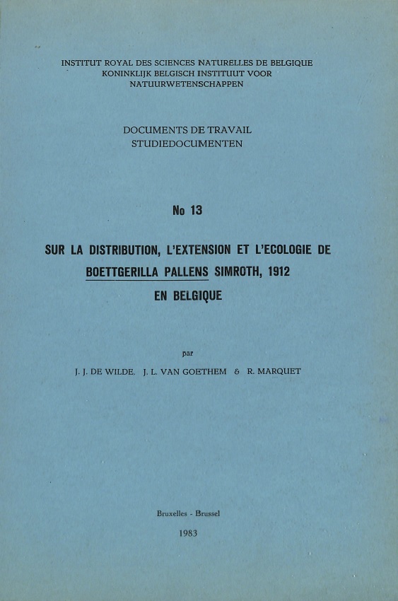 13-1983 - Sur la distribution, l'extention et l'écologie de Boettgerilla Pallens Simroth, 1912 en Belgique