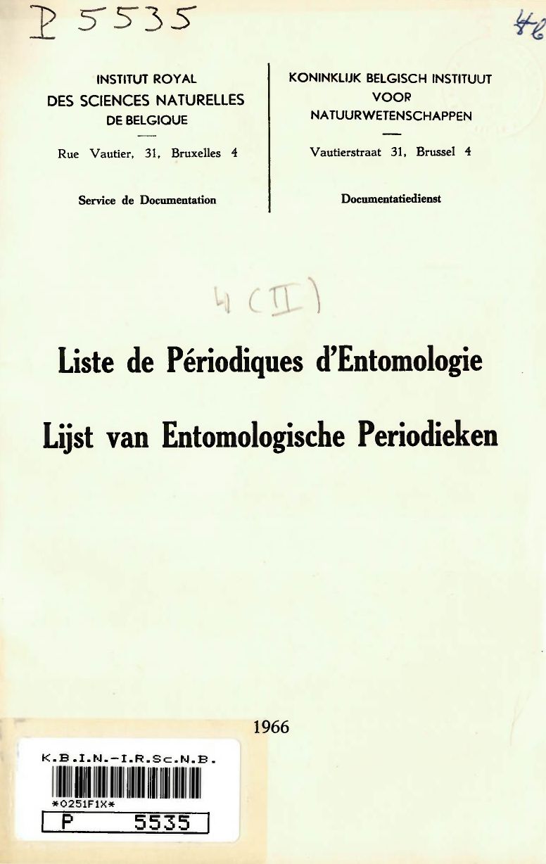 4-1966 - Liste de Périodiques d'Entomologie - Lijst van Entomologische Periodieken